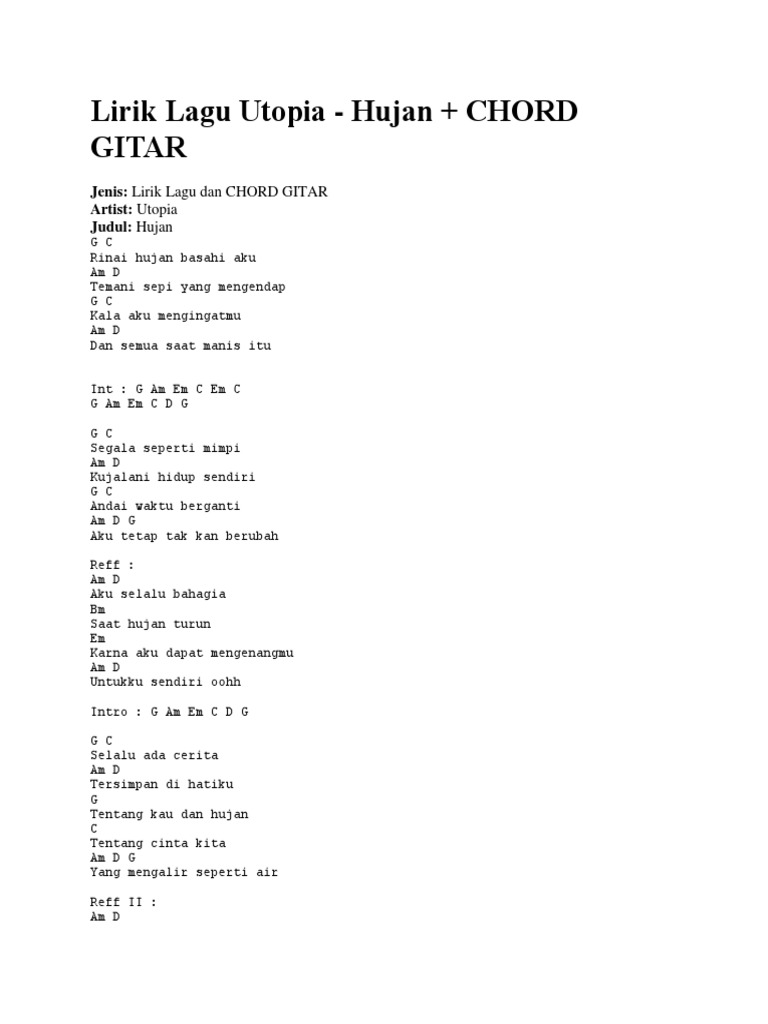 Pada aku seorang seniman. -intro C G 4x C G aku rindu kepadamu. Berikut cuplikan syair nyanyian teks dari lagunya.